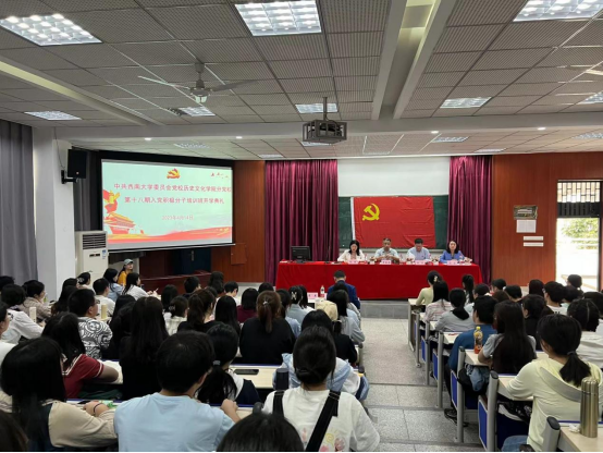 4月14日下午,中共西南大学历史文化学院委员会分党校第十八期学习培训班开学典礼在荟文楼505教室举行。本期分党校设两个学习班,一个是bat365在线官网登录入党积极分子学习班,一个是受创新创业学院党委委托,开设的创新创业学院含弘学院入党积极分子学习班,共有186 名入党积极分子参与学习。