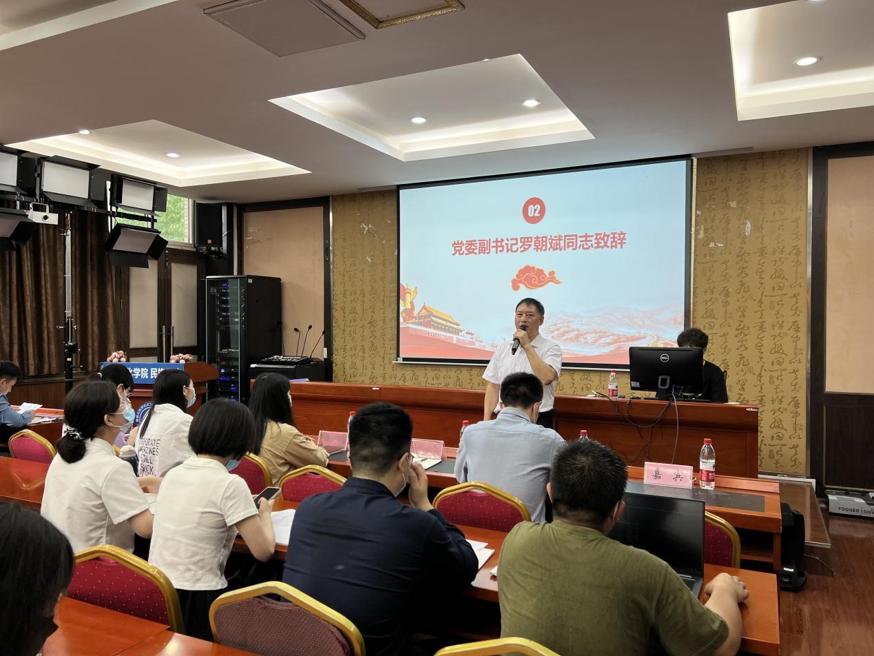 为进一步加强毕业生党员理想信念、党性修养与党员意识,勉励毕业生党员在今后的工作岗位中充分发挥先锋模范作用,铭记奋斗历程,勇担时代使命,5月28日下午,历史文化学院党委于九教七楼报告厅举办“不忘初心担使命,青春逐梦新征程”主题微党课展示活动——2022届毕业生党员主题教育培训暨发展对象学习教育活动。历史文化学院党委副书记罗朝斌同志、专职组织员周燕同志、民族学生党支部书记庄伟同志、研究生历史地理学党支部书记蒋朴同志、学院毕业生党员以及本学期拟发展对象出席本次活动。