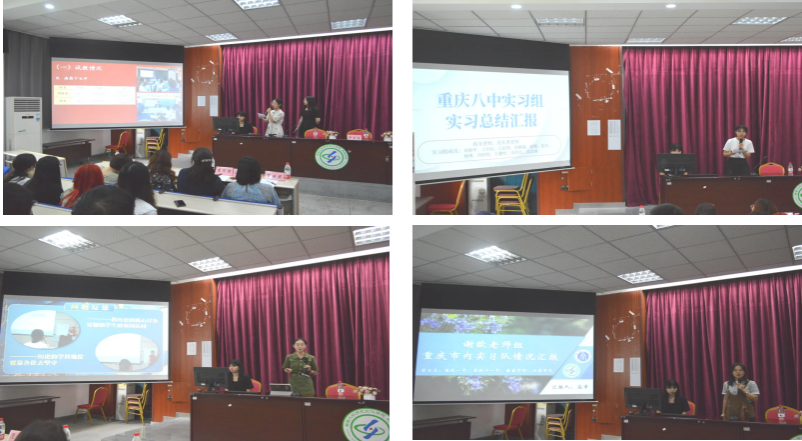 接下来由各实习小组代表分别进行总结。各小组代表从基本工作成果、成长反思两个方面进行汇报,表示经过实习锻炼,同学们都获得了明显进步,对历史教学教育、班主任工作也有了更深层次的认识与探究。