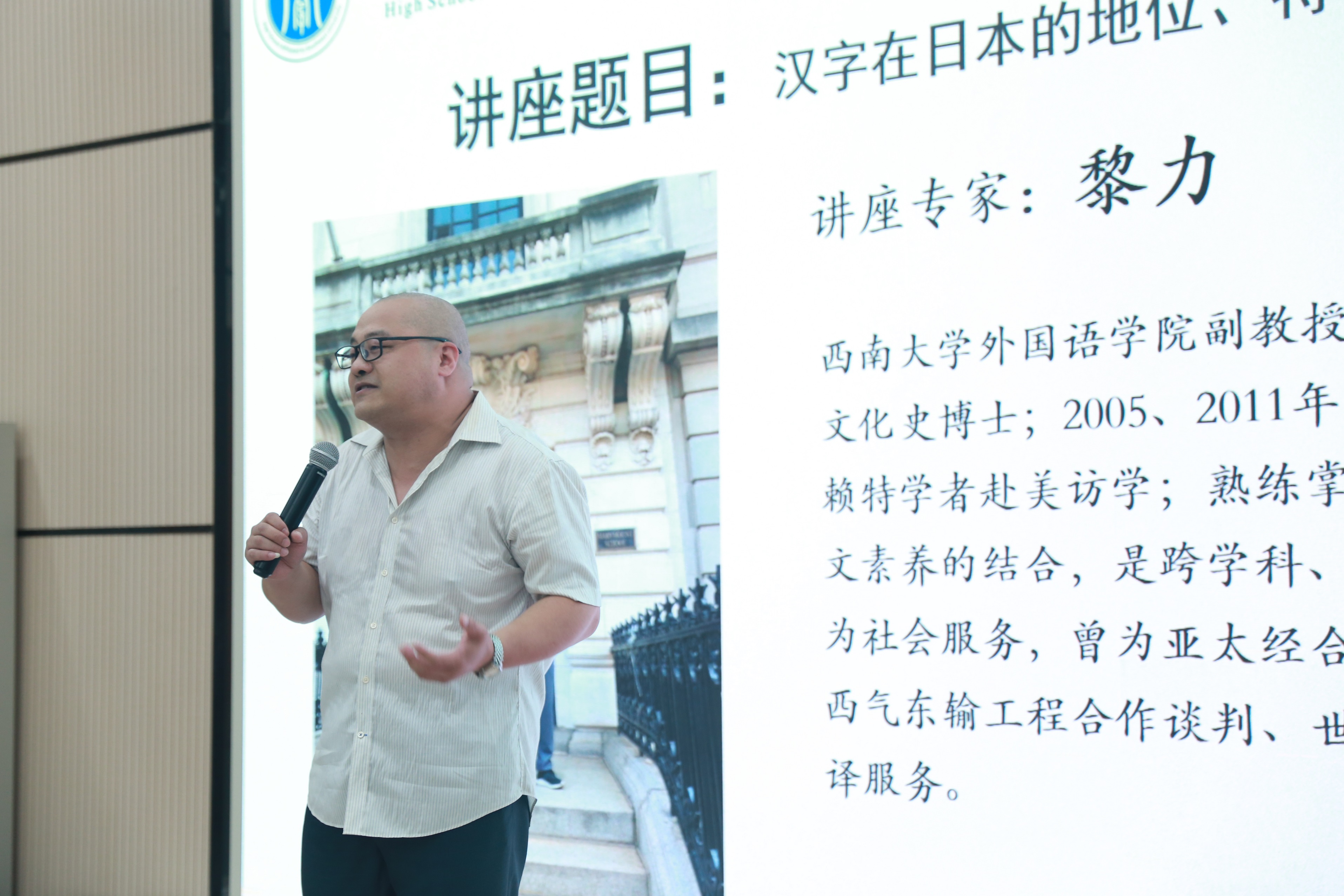 6月18日晚上7点,西南大学外国语学院黎力副教授为附中学子带来了一场激情澎湃的讲座,带领大家感悟汉字和日本的关系。西南大学附属中学杨森老师担任本次讲座的主持人。