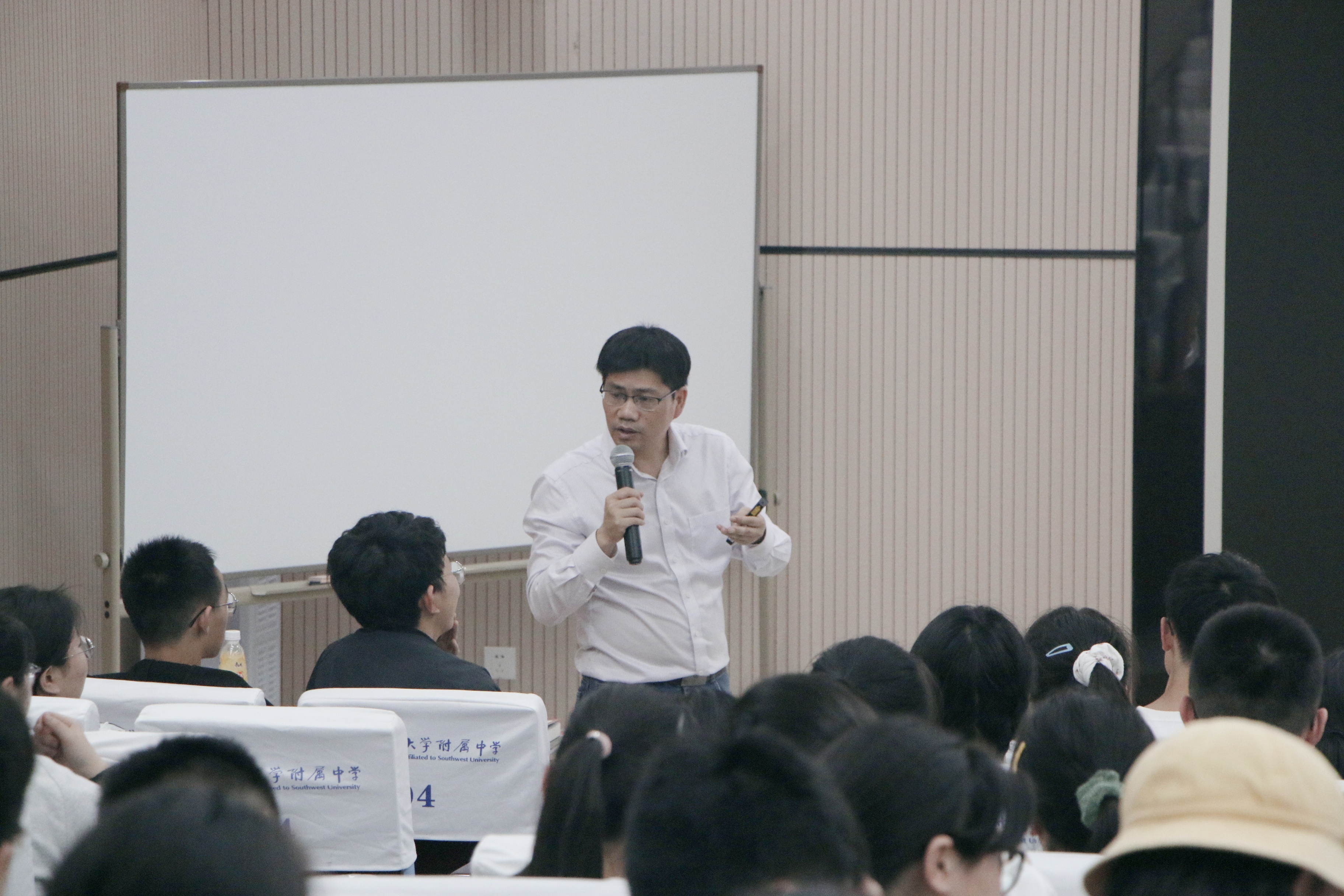5月7日晚上7点,万象楼阶梯教室座无虚席,西南大学国家治理学院郭美云教授为附中学子带来了一场精彩的讲座,用逻辑推理实例诠释了逻辑的魅力与力量。西南大学附属中学邓晓鹏书记亲临现场,西南大学附属中学肖鹏程老师担任本次讲座的主持人。